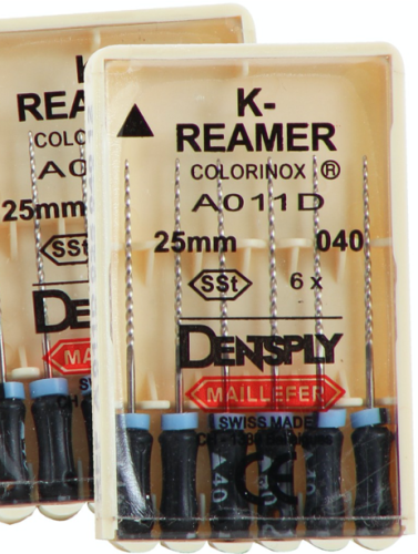 Римеры № 40 Dentsply – ручной эндодонтический инструмент, применяемый при чистке, расширении и формовке зубных каналов. Этот инструмент длиной 25 мм отличает сочетание прочности и гибкости, что позволяет работать со сложными профилями.